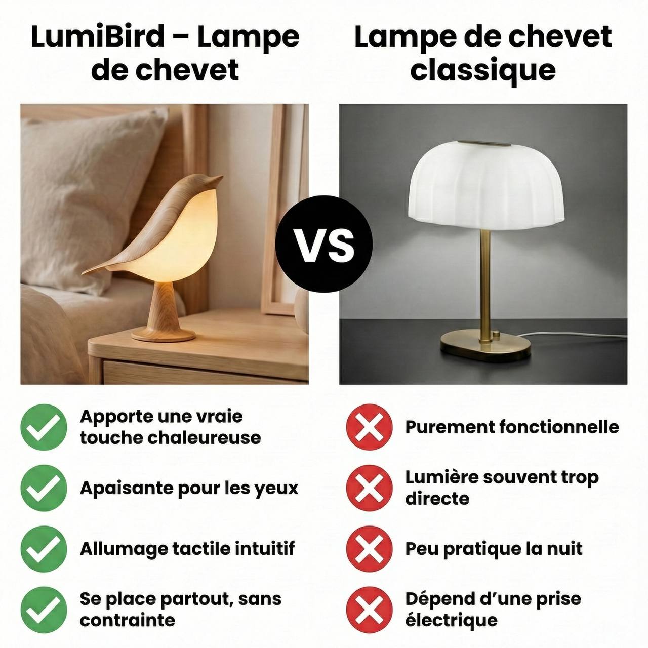 Compacte et raffinée, LumiBird s’intègre naturellement dans chaque pièce, sans jamais encombrer l’espace.